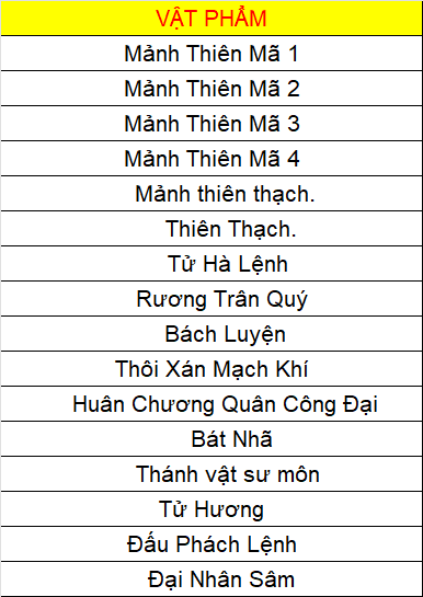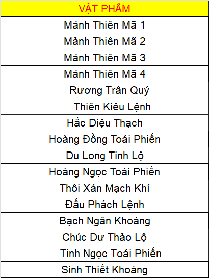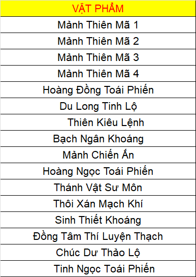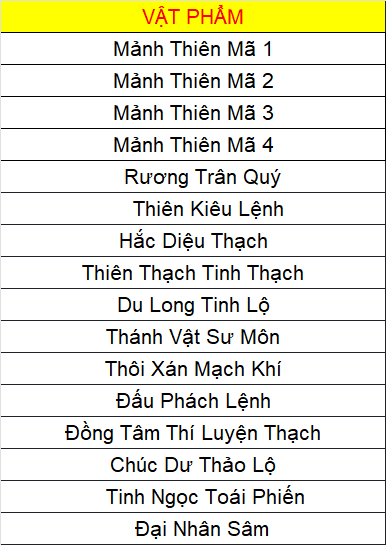 Các vật phẩm đều không khóa (trừ Đá Kỹ Năng).