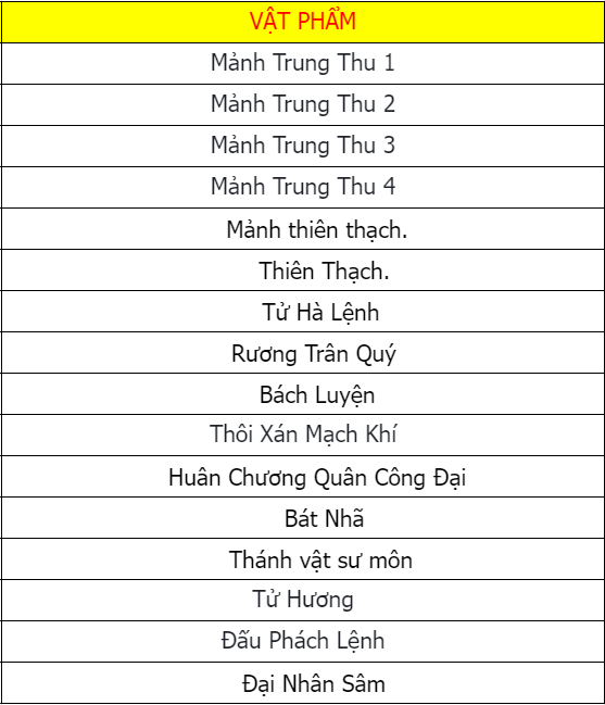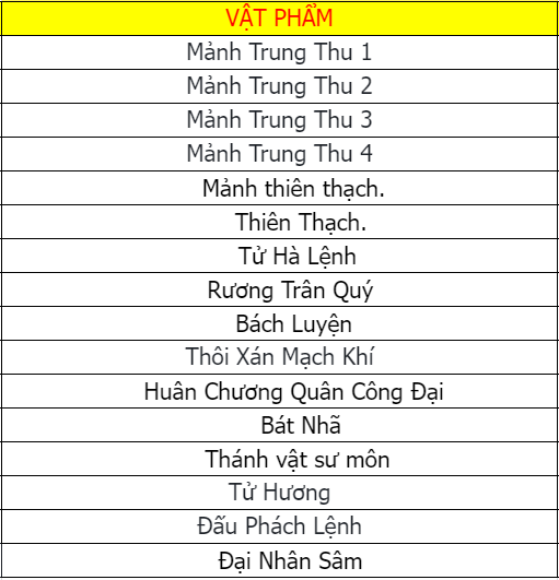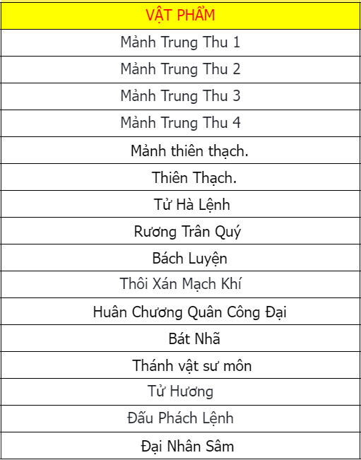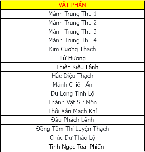 Các vật phẩm đều không khóa (trừ Đá Kỹ Năng).