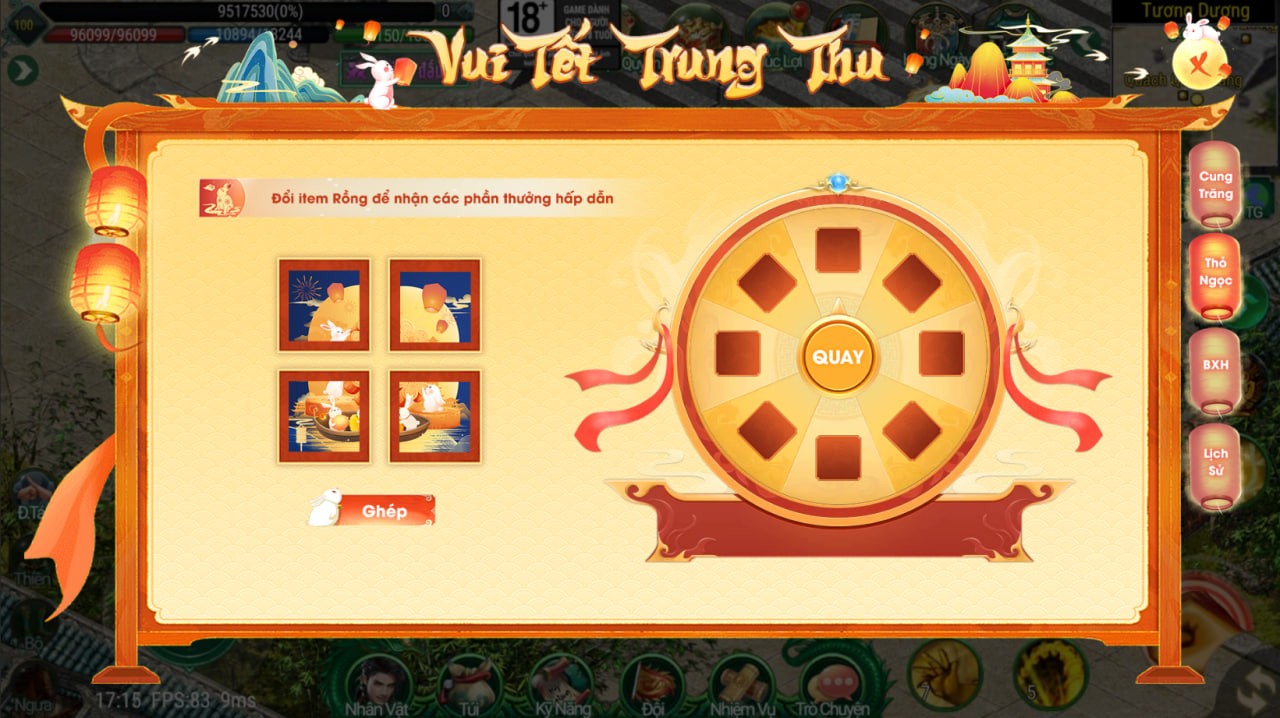 Tổng số 16 ô phần thưởng trong đó 12 ô vật phẩm và 4 ô rương may mắn.